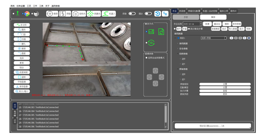 實時焊縫識別及定位:依據選定的焊縫類 型,實時對工作場景中出現的焊縫進行識別, 并輸出焊縫在相機坐標系內的坐標(X, Z)。